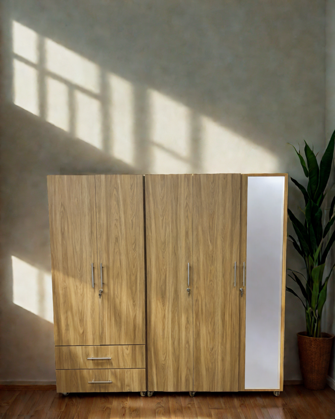 El Clóset Clyco CL 5B ha sido diseñado para quienes buscan funcionalidad sin renunciar a la estética. Con un acabado en madera natural y líneas limpias, este clóset de cuatro cuerpos brinda un amplio espacio de almacenamiento con un diseño moderno y elegante que complementa cualquier estilo de dormitorio.