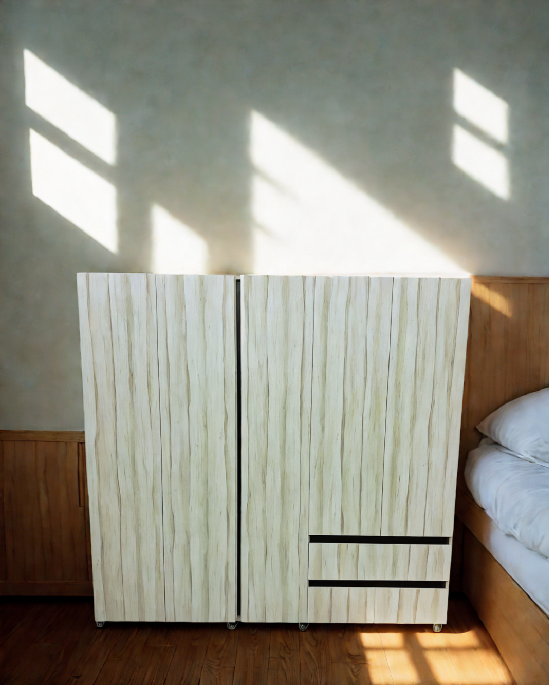 El Clóset Clyco CL 89 es la opción perfecta para quienes buscan un diseño limpio, moderno y funcional. Con su elegante acabado en madera clara con vetas verticales, este clóset ofrece una apariencia natural que aporta luminosidad y amplitud a cualquier dormitorio.